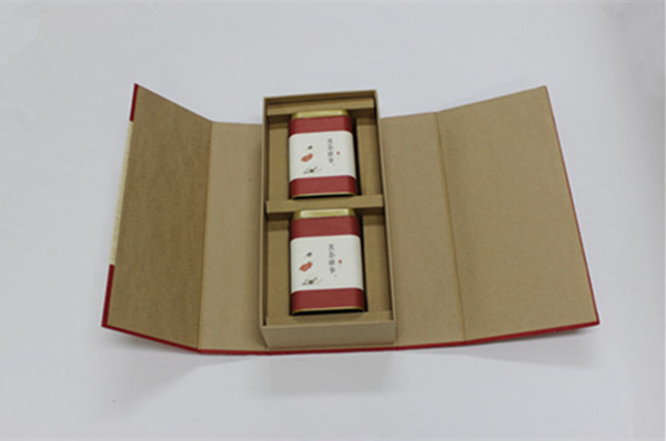 里面裝茶葉的牛皮紙盒則采用茶葉常見的書型盒,書型盒由牛皮紙皮殼加牛皮紙盒組織而成,底部用膠水粘合,這樣能牢牢的固定住牛皮紙盒,避免其移位,同時也能更好的保護(hù)產(chǎn)品。