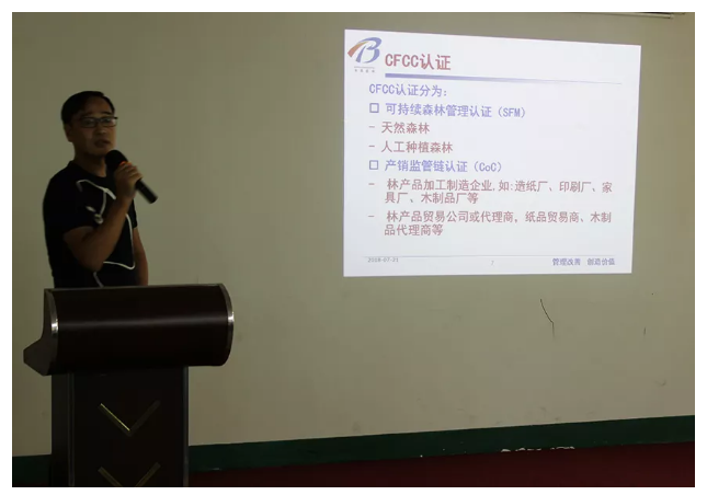 伽立實業集團邀請來自專業機構的培訓講師,任職PEFC和CFCC認證相關崗位長達數十年經驗,對營銷中心及相關部門進行PEFC和CFCC認證培訓指導。